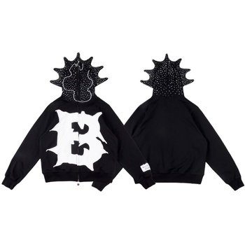 하이 퀄리티 도매 100% 면 다이아몬드 세트 집업 B 로고 인쇄 글로 갱 남자와 여자의 까마귀
